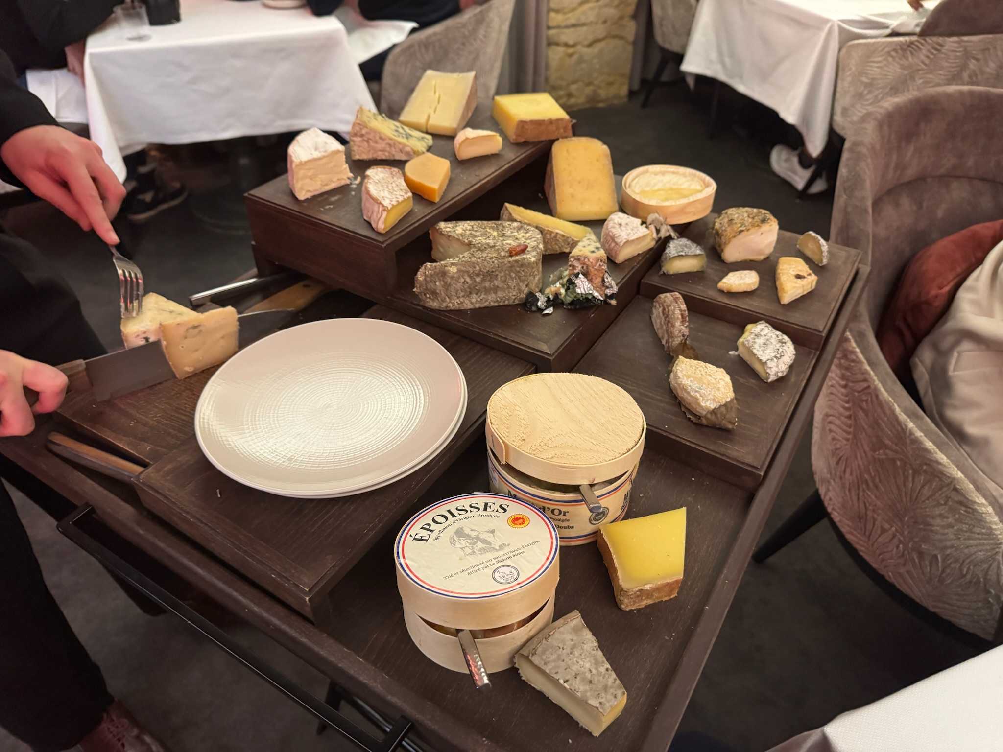 The kids treated us to a belated 35th anniversary dinner at the Michelin starred “Burgundy by Mathieu.” Here is one of the many cheese trays I did serious damage to while in Europe.