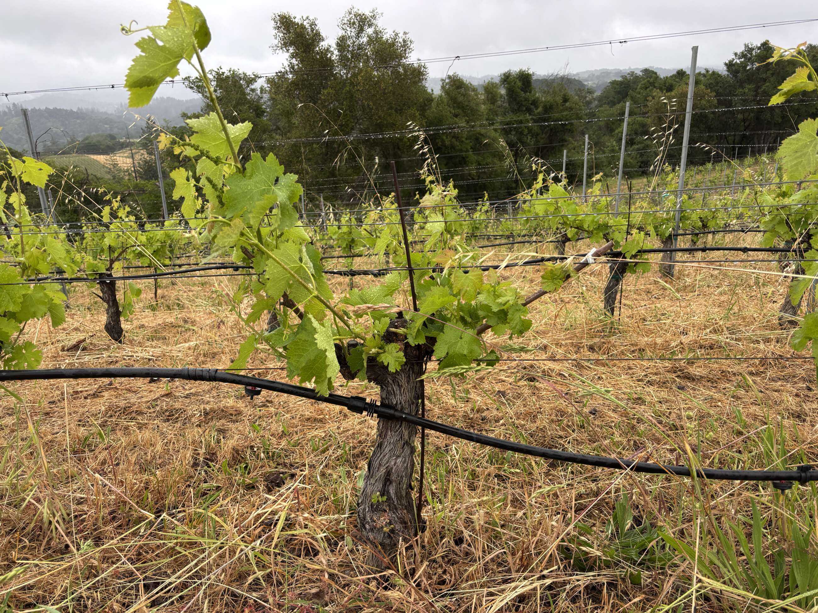 Well, we knew it was coming but the early budbreak that we experienced still caught me a little bit by surprise! And now accelerated by the very warm weather which all of California has been experiencing at this time, ready or not, our 20th growing season at Calluna Vineyards has begun. (Here is a shot of budbreak and beyond for one of our Cabernet Franc vines on March 31, 2026.)